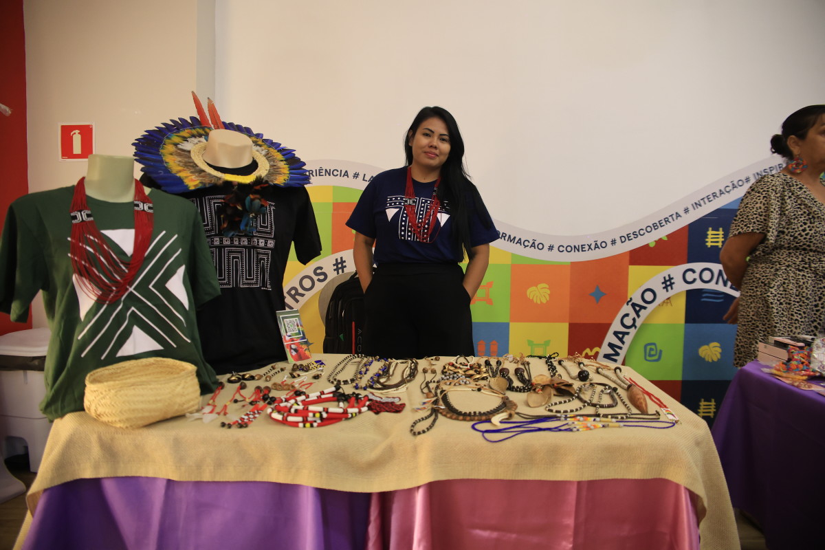 Glória Verçosa leva para a feira peças que valorizam a identidade amazônica“Eu trabalho com bolsas exclusivas e um dos diferenciais da minha marca é a sustentabilidade. Uso sementes de jarina nos acessórios e nas alças. Quando uma peça dessas é descartada, ela não causa o mesmo impacto que materiais sintéticos ou plásticos. Também procuro trazer elementos da nossa Amazônia, como a bolsa inspirada no peixe Tambaqui, que foi um dos meus lançamentos”, explicou a artesã.